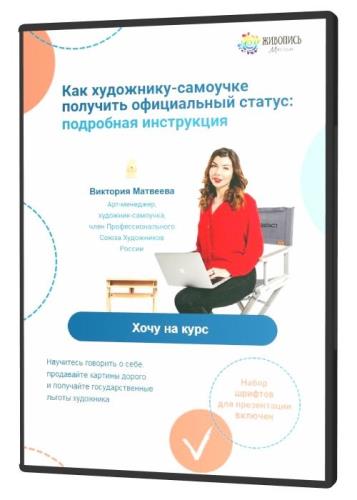 ![]() Научитесь говорить о себе, продавайте картины дорого и получайте государственные льготы художника. Главное - это уверенность в себе! Реальный статус, подкрепленный удостоверением и сертификатами, а еще вы: получите полезную информацию про творческие и профессиональные объединения. |