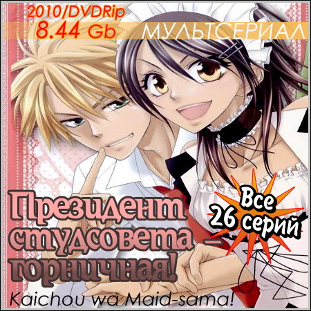 Вам представлен мультсериал "Президент студсовета - горничная!" (Kaichou wa meido-sama!). В мужской частной школе Сайка для эксперимента решили ввести совместное обучение мальчиков с девочками. Впервые, президентом студсовета выбрали девушку – Мисава Айзава. В школе Мисава является авторитетом и грозой для всех парней. После школы девушка подрабатывает в кафе. В один из таких дней, в кафе ее замечает один из самых известных в школе парней Такуми. Однако он не распускает информацию об увиденном в школе, а предпочитает помалкивать. Что же он замыслил? Он впрямь хочет помочь девушке или же он преследует какие-то свои корыстные цели? |