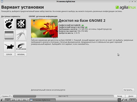 Прародителем AgiliaLinux является Slackware Linux - старейший из развивающихся по сей день дистрибутивов. Основное отличие AgiliaLinux от прародителя - нацеленность на «изкоробочность» и простоту «холодного старта» - иными словами, низкий порог вхождения. |